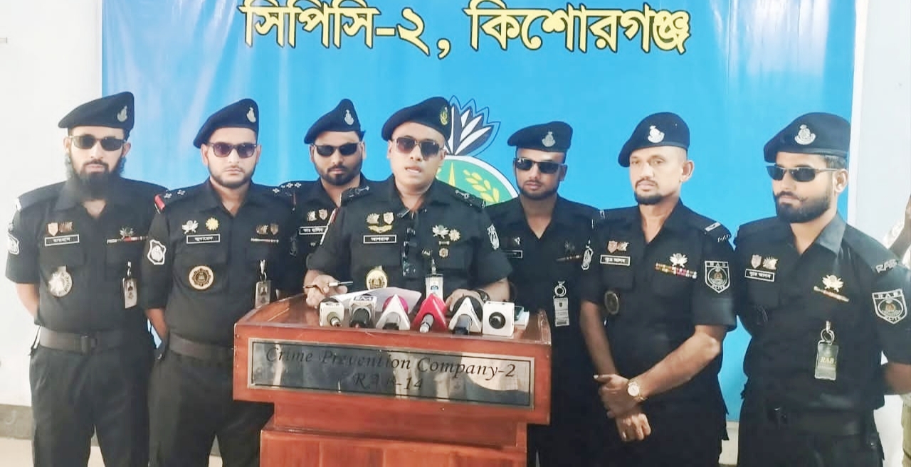 বৃহস্পতিবার (২৩ অক্টোবর) সকাল ১০টায় র্যাব-১৪, সিপিসি-২, কিশোরগঞ্জ ক্যাম্পে এক প্রেস ব্রিফিংয়ে এ তথ্য নিশ্চিত করেন কোম্পানি কমান্ডার স্কোয়াড্রন লিডার মো. আশরাফুল কবির।