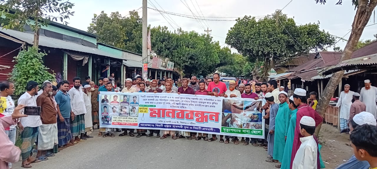 কাপাসিয়ায় সন্ত্রাসী হামলার বিচার চেয়ে এলাকাবাসী ও ব্যবসায়ীদের মানববন্ধন