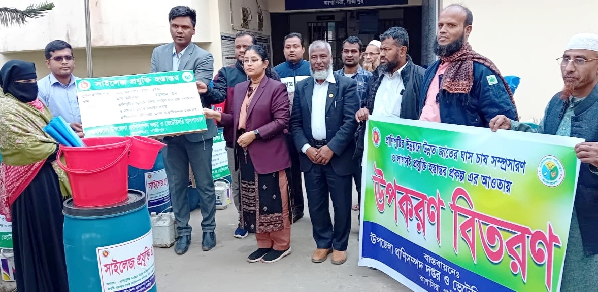 কাপাসিয়ায় সাইলেজ প্রযুক্তির কাঁচা ঘাস সংরক্ষণে উপকরণ বিতরণ