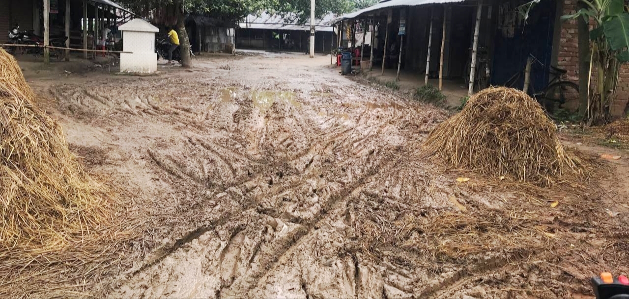 ঘোড়াঘাটে গ্রামীণ রাস্তার বেহাল দশা সংস্কারের দাবি এলাকাবাসীর