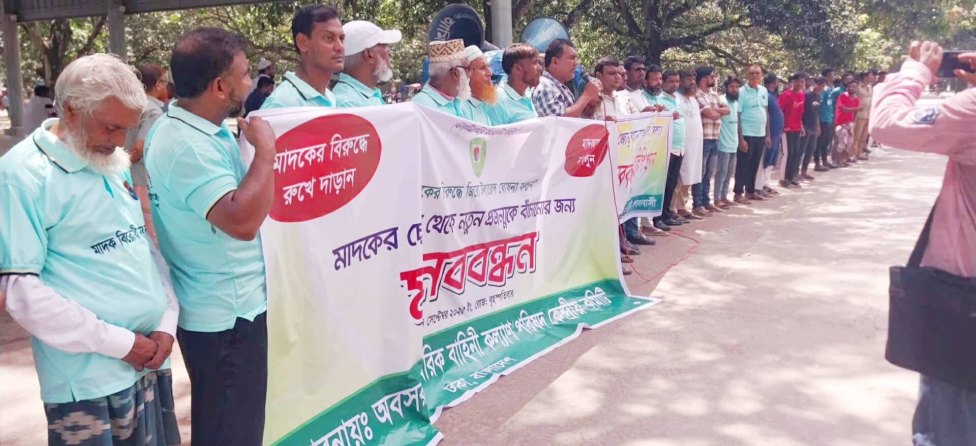 চাঁপাইনবাবগঞ্জ পৌর এলাকার চাঁন্দলাই জোড়বাগান বস্তি এলাকায় মাদকের ভয়াবহ ছোবল,মাদক বিক্রি , সেবনকারীদের বিরুদ্ধে মানববন্ধন করেছে চাঁন্দলাই জোড়বাগান এলাকার যুবসমাজ। বৃহস্পতিবার সকাল সাড়ে ১০ টায় জেলা প্রশাসকের কার্যালয়ের সামনে এ মানববন্ধন কর্মসূচি অনুষ্ঠিত হয়।