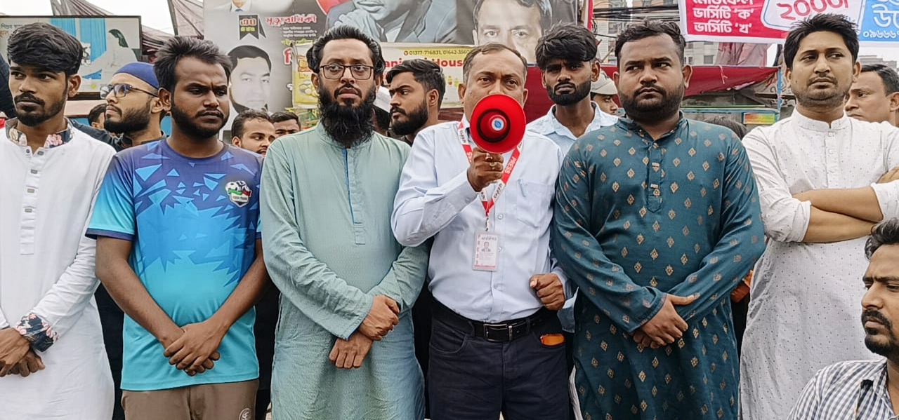 শুক্রবার (৮ আগস্ট) বিকেলে টঙ্গীর কলেজ গেইট এলাকায় এই মানববন্ধন ও বিক্ষোভ কর্মসূচির আয়োজন করে জাতীয় নাগরিক পার্টি (এনসিপি) এবং স্থানীয় সাংবাদিক সমাজ।