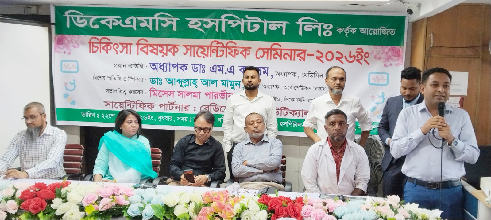 আধুনিক চিকিৎসা সেবার মানোন্নয়ন এবং চিকিৎসকদের জ্ঞান ও দক্ষতা বৃদ্ধি লক্ষ্যে ডিকেএমসি হসপিটাল লিমিটেডের উদ্যোগে এক জাঁকজমকপূর্ণ চিকিৎসা বিষয়ক সায়েন্টিফিক সেমিনার-২০২৬ অনুষ্ঠিত হয়েছে।
