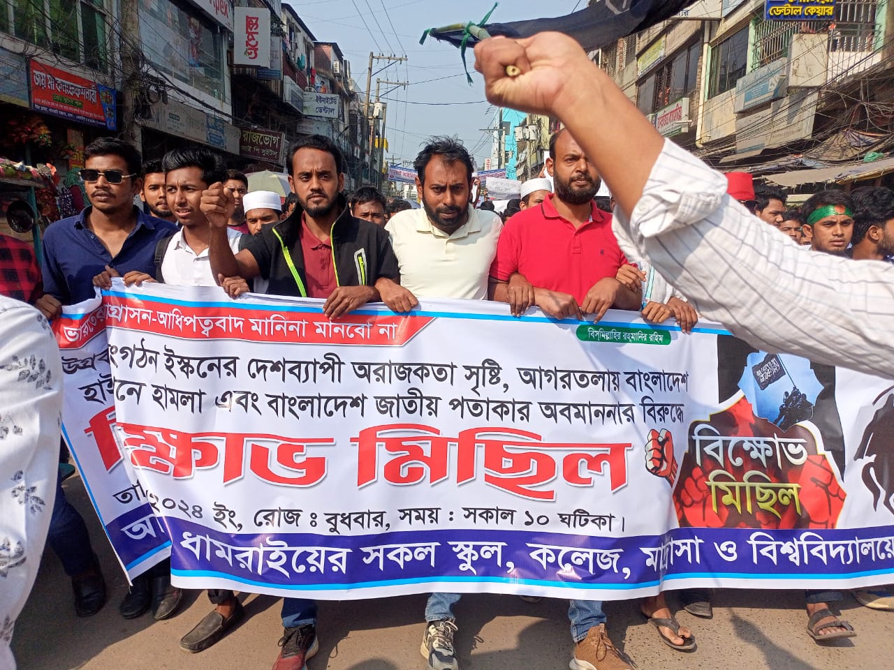 দূতাবাসে হামলার প্রতিবাদে ঢাকা জেলা ছাত্রদলের বিক্ষোভ মিছিল