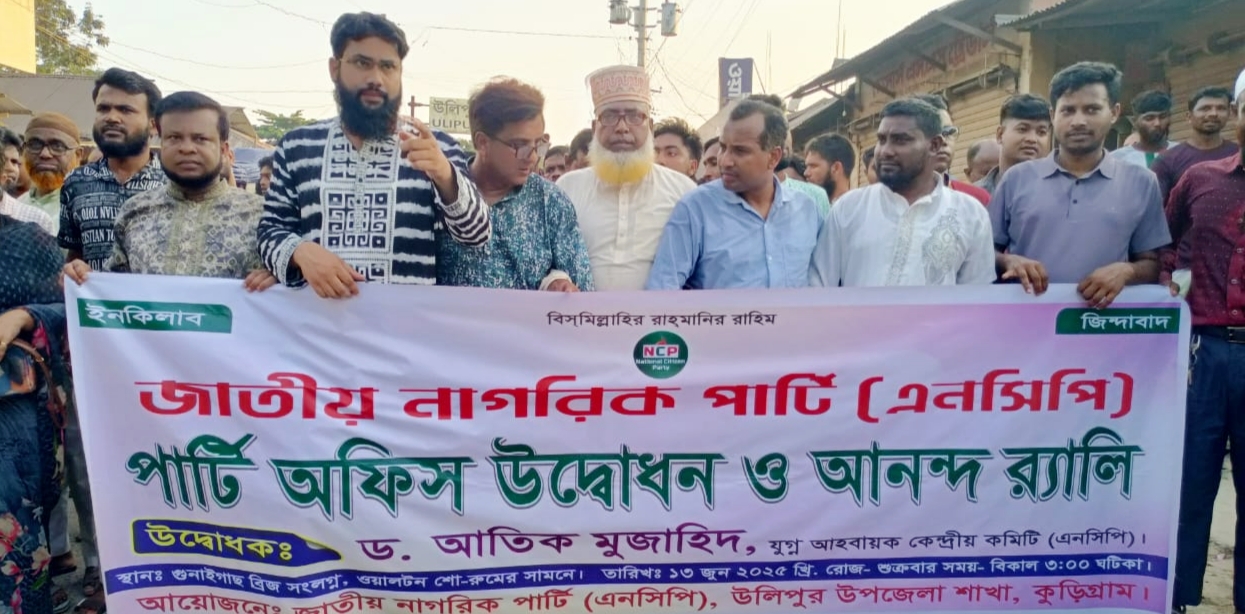 জাতীয় নাগরিক পার্টি (এনসিপি)-এর উলিপুর উপজেলা শাখার উদ্যোগে পার্টির নতুন কার্যালয় উদ্বোধন করা হয়েছে।