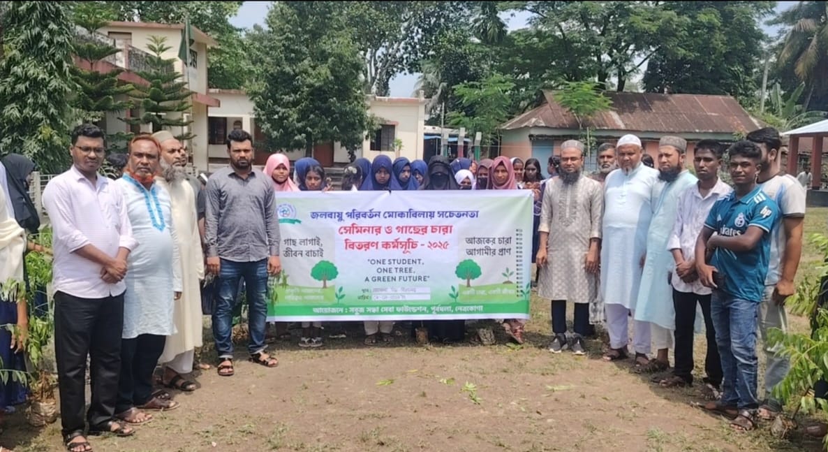 নেত্রকোনার পূর্বধলায় সবুজ সন্ধ্যা ফাউন্ডেশনের উদ্যোগে গাছের চারা বিতরণ