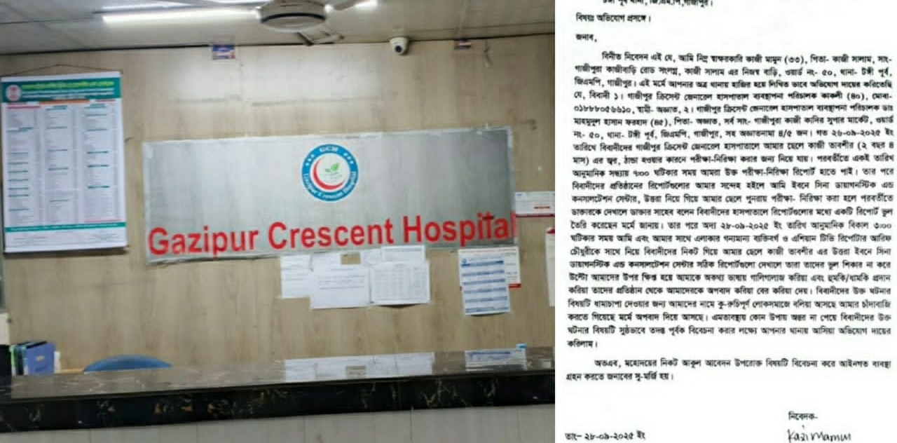 ভুল রিপোর্ট ধামাচাপায় অভিভাবক ও সাংবাদিককে হুমকি থানায় অভিযোগ