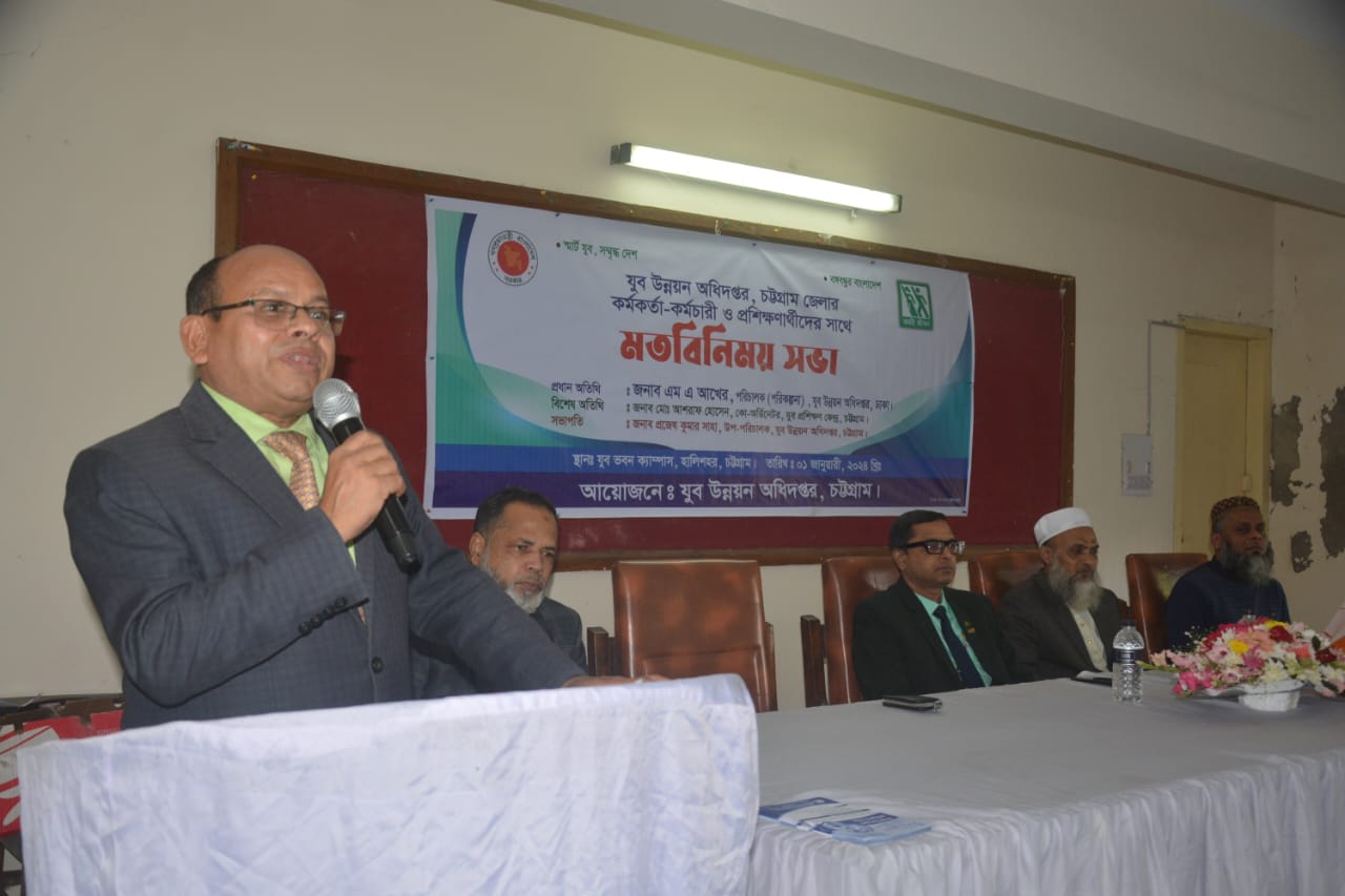 ১ জানুয়ারি যুব উন্নয়ন অধিদপ্তর ঢাকার পরিচালক (পরিকল্পনা) এম এ আখের চট্টগ্রাম আগমন উপলক্ষে যুব উন্নয়ন অধিদপ্তর চট্টগ্রাম এর কর্মকর্তা-কর্মচারী এবং সামাজিক সংগঠক ও প্রশিক্ষণার্থীদের সাথে মতবিনিময় সভা অনুষ্ঠিত হয়।