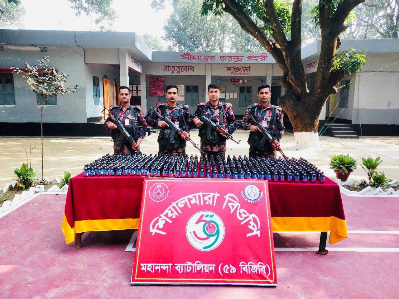 শিবগঞ্জ সীমান্তে মহানন্দা ব্যাটালিয়ান ৫৯ বিজিবির অভিযানে ৩৯৪ বোতল ফেনসিডিল উদ্ধার