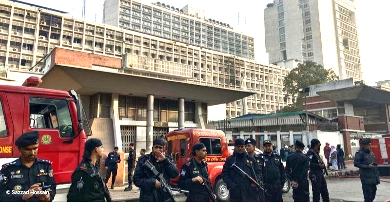 ‘পানির কোনও সংকট ছিল না’ দাবি করে ডিজি বলেন, ৫ ঘণ্টার মতো আগুন নিয়ন্ত্রণের সময় লাগলেও এখানে পানির কোনও সংকট ছিল না। পাশেই ওসমানি মিলনায়তন থেকে পানি পেয়েছি। ওয়াসার গাড়ি এসে পানি দিয়ে গেছে। কিন্ত সচিবলায়ের কক্ষগুলো আবদ্ধ ও গ্লাস লাগানো থাকায় আগুন নিয়ন্ত্রণে আনতে সময় লেগেছে।