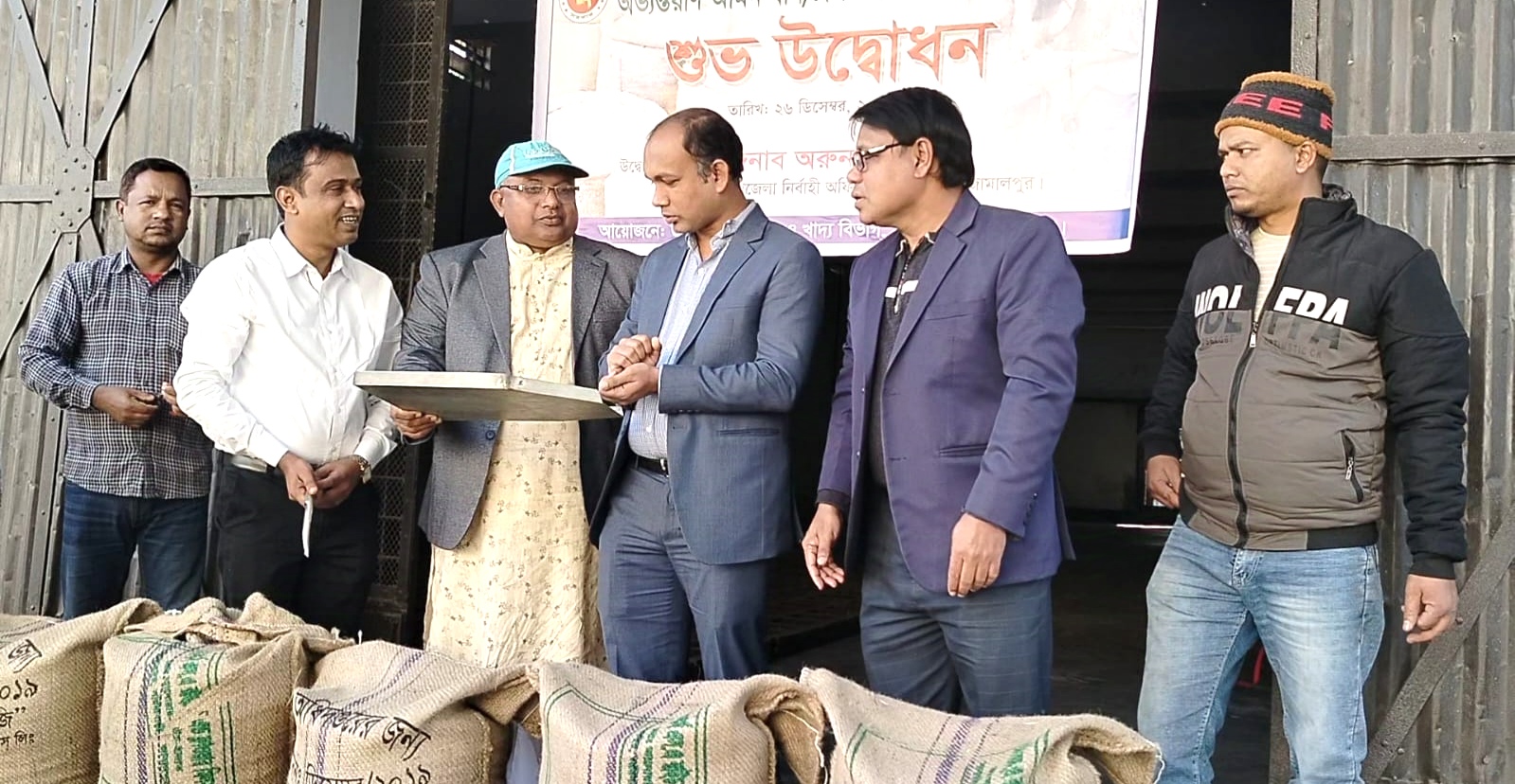 উদ্বোধনী অনুষ্ঠানে উপস্থিত ছিলেন উপজেলা খাদ্য নিয়ন্ত্রক বুলবুল আহাম্মদ, খাদ্য গুদামের কর্মকর্তা আশিসুল ইসলাম, ধান ব্যবসায়ী আনোয়ারুল সাদাত লান্জু, স্থানীয় কৃষক, ডিলার এবং গণ্যমান্য ব্যক্তিবর্গ।