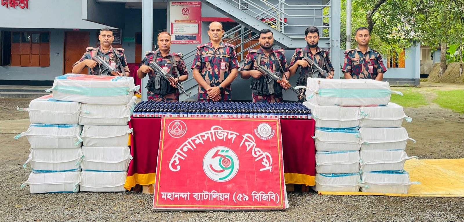সোনামসজিদ সীমান্তে ৫৯ বিজিবির বড় সাফল্য ভারতীয় ট্রাকসহ প্রায় ৬ হাজার বোতল মাদক সিরাপ জব্দ