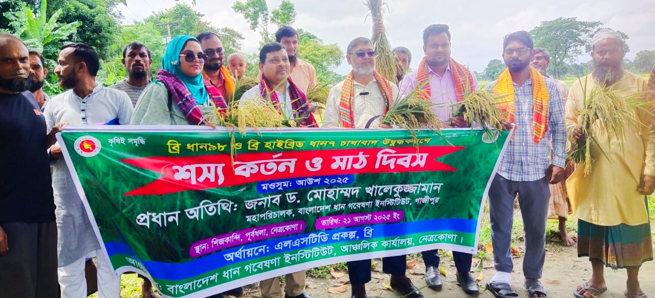 বৃহস্পতিবার নেত্রকোণা জেলার পূর্বধলা উপজেলার শিজকান্দি গ্রামে ব্রি’র আঞ্চলিক কার্যালয়ের আয়োজনে আউশ-২০২৫ মৌসুমের ব্রি ধান ৯৮ ও ব্রি হাইব্রিড ধান ৭-এর শস্য কর্তন ও মাঠ দিবস অনুষ্ঠানে তিনি এসব কথা বলেন। অনুষ্ঠানে কৃষকদের আসন্ন আমন মৌসুমে উন্নত জাতের ধান চাষের পরামর্শ দেন এবং ব্রি’র বিজ্ঞানীদের কৃষকের পাশে থাকার অঙ্গীকার পুনর্ব্যক্ত করেন।