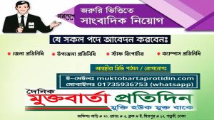আপনার প্রতিষ্ঠানের বিজ্ঞাপন দিতে যোগাযোগ করুণঃ 01735936753 *** বিঃ দ্রঃ  দেশের সকল জেলা/উপজেলা প্রতিনিধি হিসেবে সংবাদকর্মী নিয়োগ চলছে,আগ্রহীগন সিভি পাঠানঃ muktobartaprotidin@gmail.com এবং 01735936753 ( whatsapp ) ## নোটিশঃ "আজমেরী সরিষার তৈল" ঘাগটিয়া চালা বাজার, কাপাসিয়া, গাজীপুর (পাইকারি ও খুচরা বিক্রয় করা হয়) মোবাঃ  01723219808