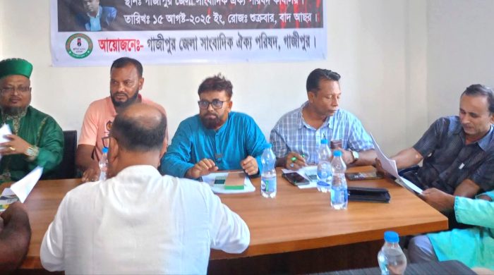 শামসুল হুদা লিটন, গাজীপুর: গাজীপুর জেলা সাংবাদিক ঐক্য পরিষদের সাবেক কোষাধ্যক্ষ বিশিষ্ট সাংবাদিক আল আমীন এর প্রয়াত মায়ের জন্য মিলাদ ও দোয়া মাহফিল অনুষ্ঠিত হয়েছে। ২৩ আগস্ট শনিবার বাদ