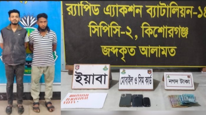 নিজাম উদ্দীন,কিশোরগঞ্জ সদর প্রতিনিধি: কিশোরগঞ্জ জেলা শহরের খরমপট্টি এলাকায় অভিযান চালিয়ে ১৩৫ পিস ইয়া ও ইয়াবা বিক্রির নগদ আট হাজার টাকাসহ দুই যুবককে গ্রেফতার করেছে র‌্যাব-১৪, সিপিসি-২ কিশোরগঞ্জ ক্যাম্পের একটি