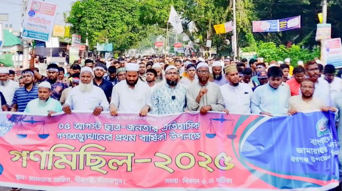 নাজমুল হোসেন, বীরগঞ্জ প্রতিনিধিঃ জুলাই গণঅভ্যুত্থানের প্রথম বার্ষিকী উপলক্ষ্যে বাংলাদেশ জামায়াতে ইসলামীর কেন্দ্র ঘোষিত কর্মসূচির অংশ হিসেবে বীরগঞ্জ উপজেলা শাখা জামায়াতের উদ্যোগে গণমিছিল ও সমাবেশ অনুষ্ঠিত হয়েছে। গতকাল মঙ্গলবার (৫