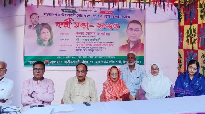 মাহিদুল ইসলাম ফরহাদ,চাঁপাইনবাবগঞ্জ জেলা প্রতিনিধি: বাংলাদেশ জাতীয়তাবাদী পৌর মহিলা দল, ২নং ওয়ার্ড, চাঁপাইনবাবগঞ্জ-এর উদ্যোগে এক কর্মী সভা অনুষ্ঠিত হয়েছে। সোমবার (১৩ অক্টোবর ২০২৫) বিকাল ৫ টায় হুজরাপুর এলাকায় এ কর্মী