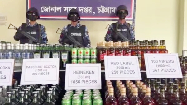 স ম জিয়াউর রহমান, চট্টগ্রাম : চট্টগ্রামের হালিশহর থানাধীন ডগির খাল এলাকায় কোস্ট গার্ডের বিশেষ অভিযানে বিপুল পরিমাণ বিদেশি মদ জব্দ করা হয়েছে। গোপন সংবাদের ভিত্তিতে (৩ মে২০২৫) শনিবার ভোর