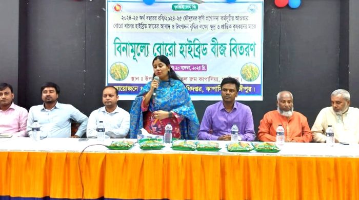 এফ এম কামাল হোসেন, কাপাসিয়া (গাজীপুর) : গাজীপুরের কাপাসিয়ায় কৃষি প্রণোদনা কর্মসূচির (২০২৪-২৫) আওতায় রবি মৌসুমের ক্ষুদ্র ও প্রান্তিক কৃষকদের মাঝে বিনামূল্যে হাইব্রিড জাতের ধান বীজ বিতরণ করা হয়েছে। উপজেলা