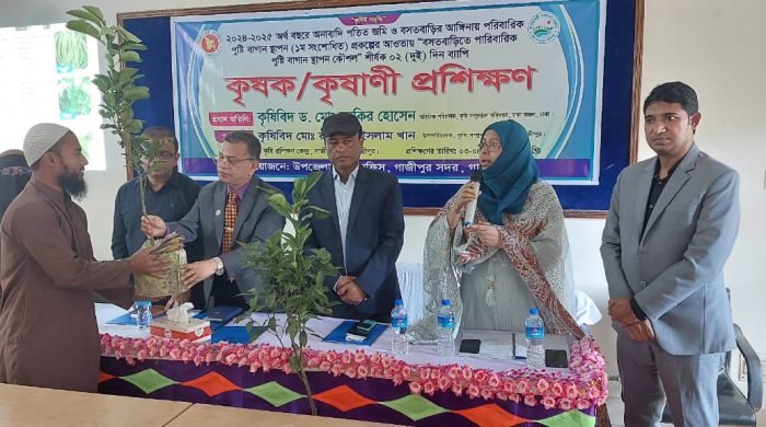 এ এইচ সবুজ (নিজস্ব প্রতিবেদক): গাজীপুরের সদর উপজেলায় ২০২৪-২৫ অর্থ বছরে অনাবাদি পতিত জমি ও বসতবাড়ির আঙ্গিনায় পারিবারিক পুষ্টি বাগান স্থাপনের লক্ষ্যে কৃষক/কৃষাণিদের মাঝে দুই দিনব্যাপী প্রশিক্ষন প্রদান ও কৃষি