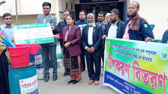 এফ এম কামাল হোসেন, কাপাসিয়া (গাজীপুর) : গাজীপুরের কাপাসিয়া উপজেলা প্রাণিসম্পদ কর্মকর্তার কার্যালয়ের উদ্যোগে সাইলেজ প্রযুক্তির মাধ্যমে কাঁচা ঘাস সংরক্ষণে খামারীদের মাঝে উপকরণ বিতরণ করা হয়েছে। ৮ জানুয়ারি বৃহস্পতিবার বিকালে