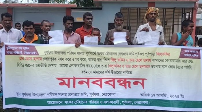 শরিফুল ইসলাম, টাঙ্গাইল প্রতিনিধি: টাঙ্গাইলের কালিহাতী উপজেলার এলেঙ্গা বাসস্ট্যান্ড সংলগ্ন পুলিশ বক্স চত্বরে চাঁদাবাজি ও ভুয়া সাংবাদিকতার বিরুদ্ধে এক মানববন্ধন অনুষ্ঠিত হয়েছে। রবিবার (১৭ আগস্ট ২০২৫)দুপুরে, বিভিন্ন শ্রেণি-পেশার মানুষ এতে