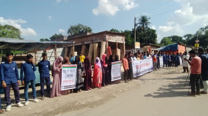 এ কে আজাদ, রাণীশংকৈল প্রতিনিধিঃ রাণীশংকৈল উপজেলার নেকমরদ, ধর্মগড় ও কাশিপুর ইউনিয়ন এবং পাশ্ববর্তী হরিপুর, বালীয়াডাঙ্গী উপজেলার একাংশের প্রায় লক্ষাধিক মানুষের চলাচলের ১০ কিলোমিটারের ব্যস্ততম মরণফাঁদ সড়কটি প্রশস্তকরণের দাবিতে মানববন্ধন