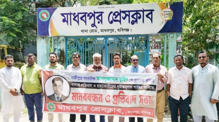 সোহাগ মিয়া, মাধবপুর: হবিগঞ্জের মাধবপুরে এক্তিয়ারপুর উত্তর সরকারি প্রাথমিক বিদ্যালয়ের ৪র্থ শ্রেণীর শিক্ষার্থী সুমাইয়া আক্তারের প্রকৃত হত্যাকারীদের দৃষ্টান্তমূলক শাস্তির দাবিতে মানবন্ধন অনুষ্ঠিত হয়েছে। বৃহস্পতিবার দুপুরে উপজেলার এক্তিয়ারপুর বাজারে