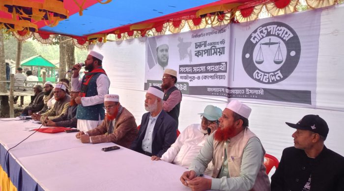 কাপাসিয়া, গাজীপুর প্রতিনিধি: বাংলাদেশ জামায়াতে ইসলামীর উদ্যোগে গাজীপুর -৪ কাপাসিয়া আসনের আসনের তরগাঁও ইউনিয়নের ঐতিহ্যবাহী পাখরীর বাজারে নির্বাচনী প্রচারণা সভা অনুষ্ঠিত হয়। বিশিষ্ট গীতিকার সুরকার ও ব্যাংকার ওস্তাদ তোফাজ্জল হোসাইন