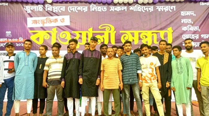 আশিকুর রহমান, স্টাফ রিপোর্টার: জুলাই বিপ্লব’ ২০২৪ এর দেশের নিহত সকল শহীদের স্মরণে বিপ্লবী এরশাদ নগর ছাত্র সমাজের উদ্যোগে সাংস্কৃতিক ও কাওয়ালী সন্ধ্যা অনুষ্ঠানের আয়োজন করা হয়। রবিবার (২২ সেপ্টেম্বর)