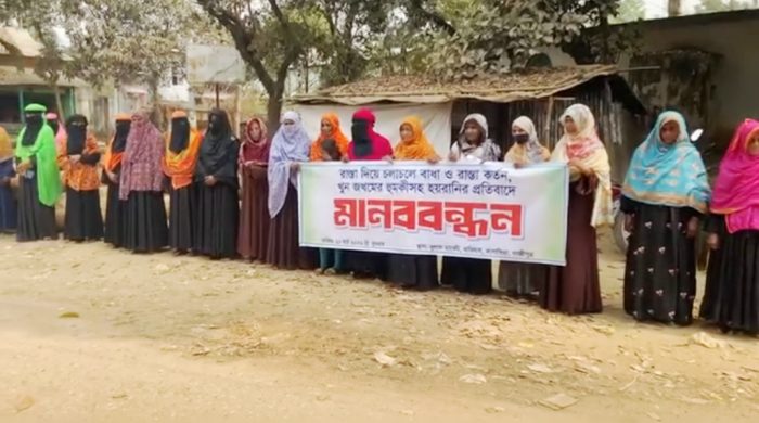 কাপাসিয়া,গাজীপুর প্রতিনিধি: গাজীপুরের কাপাসিয়া উপজেলার ঘাগটিয়া ইউনিয়নের খিরাটি গ্রামের ব্রহ্মপুত্র নদের শাখা সুতি জলাশয়ে স্থায়ী স্থাপনা নির্মাণ করে জবরদখল ও ফসলী জমি আবাদে প্রতিবন্ধকতা সৃষ্টির প্রতিবাদে মানববন্ধন করেছেন স্থানীয় জনসাধারণ।