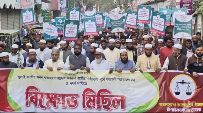 মাহিদুল ইসলাম ফরহাদ,চাঁপাইনবাবগঞ্জ জেলা প্রতিনিধি: চাঁপাইনবাবগঞ্জে জুলাই সনদ বাস্তবায়নের আদেশ জারি ও নভেম্বরের মধ্যেই গণভোটের আয়োজনসহ ৫ দফা দাবিতে বিক্ষোভ মিছিল-সমাবেশ অনুষ্ঠিত হয়েছে। বাংলাদেশ জামায়াতে ইসলামী চাঁপাইনবাবগঞ্জ জেলা শাখার উদ্যোগে
